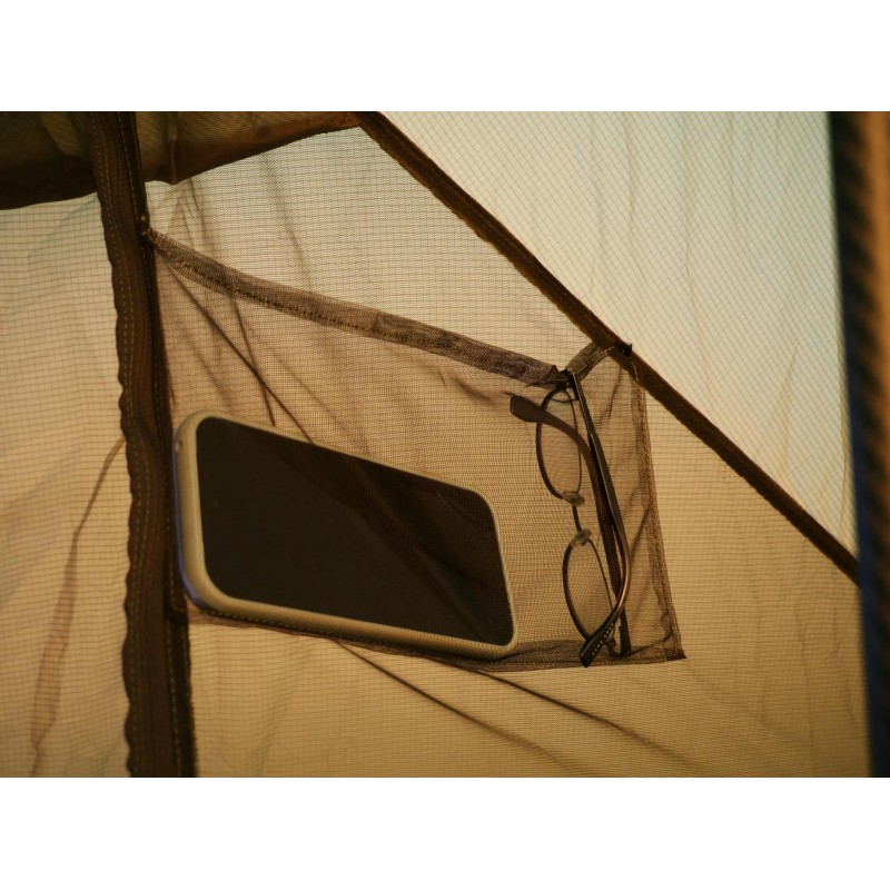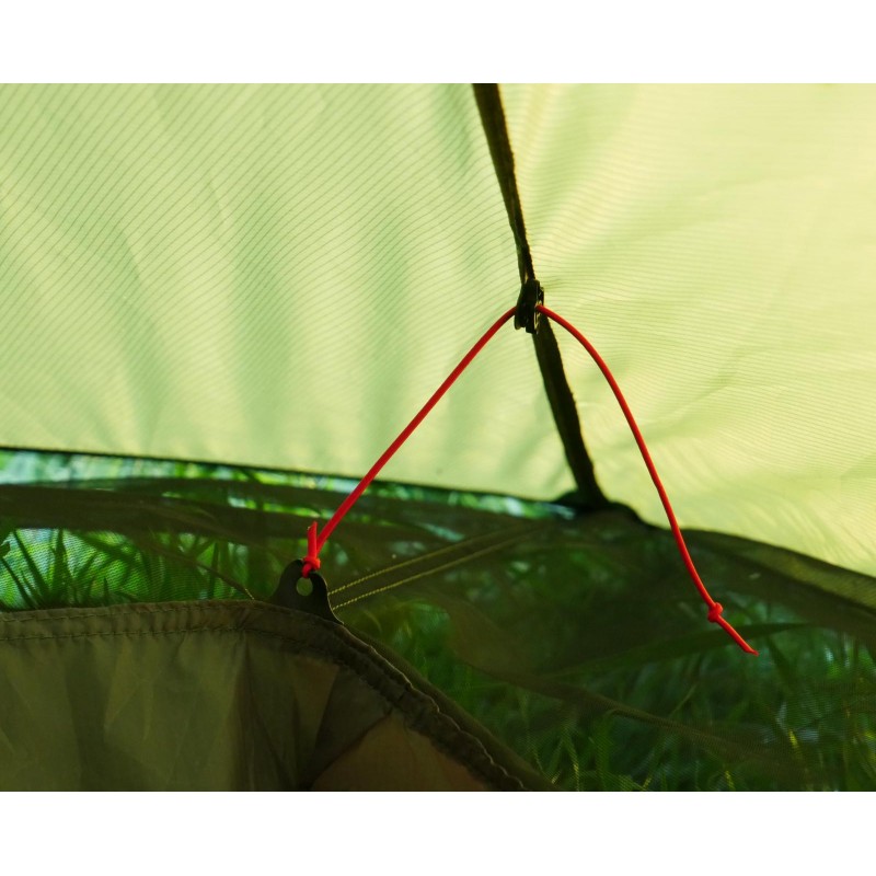 Une des spécificité de cette tente est l'absence de fermeture éclair sur la toile extérieure : celle-ci a été remplacée par la superposition de deux pans de toile munis de clips pour une ouverture facilitée. On gagne ainsi en poids, mais aussi en résistance et en durabilité. Une version avec fermeture éclair est également disponible en option.